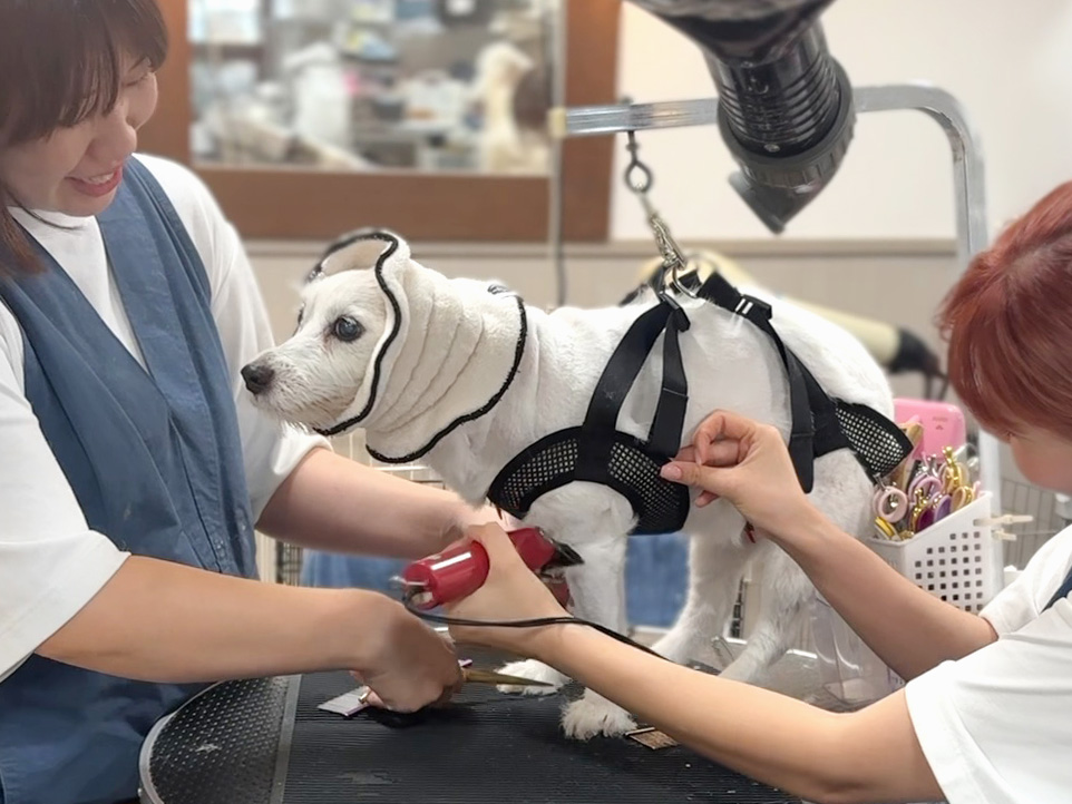 トリマー総勢14人、そのうちベテランが10人も在籍。トリミング中の安全性確保もスタッフ数の多い当店ならではの特徴です。